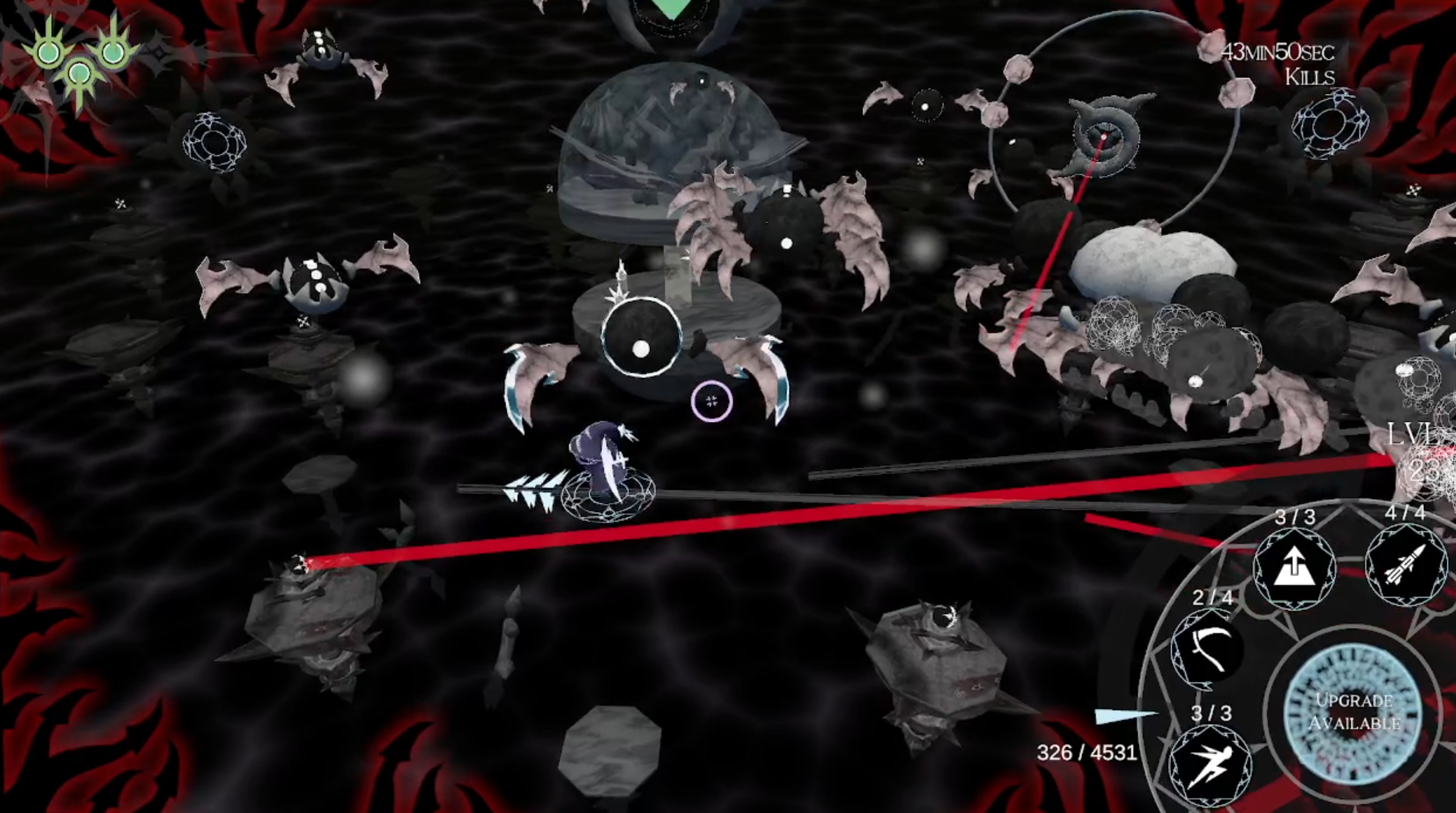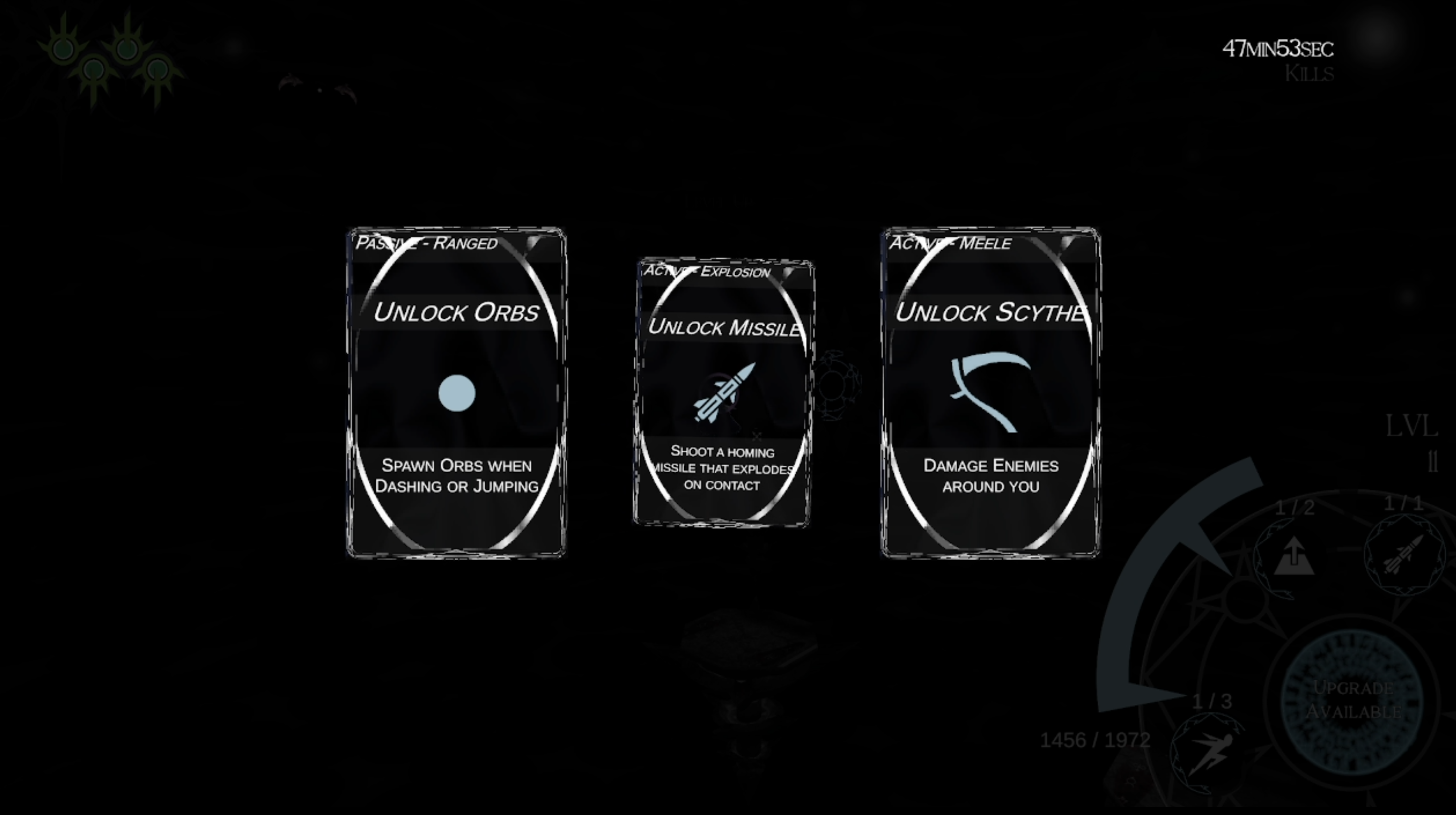 Some abilities reset your gravity and make you float for a small duration. Use them frequently to not worry about falling down. Dash, Scythe, Burst and Missile reset your gravity. Gliding stops you from falling.